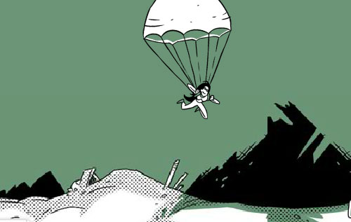 18. Open the door, click parachute, click Jump.
